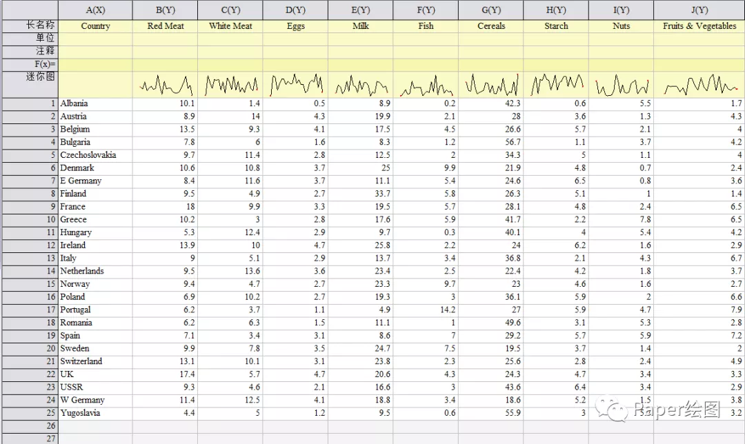 4. 第二个文件,是一个包括两个表格数据的文件:其中第一个是原始数据,第二个是绘图生成的数据文件