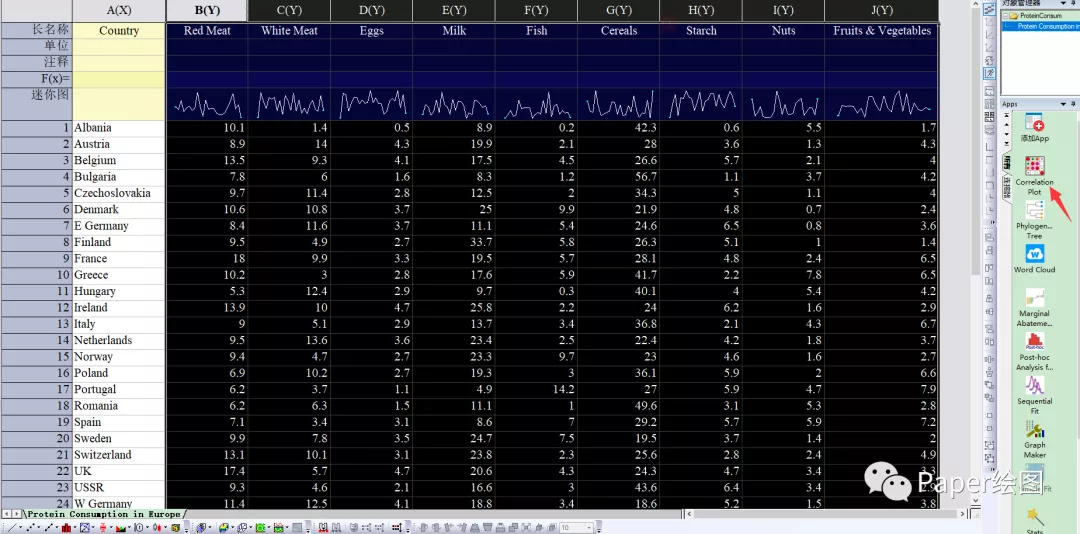 【摘要】 今天给大家带来的是一幅相关系数图,就是在Origin中使用相关系数app:CorrelationPlot.opx,进行作图,你只需要输入数据,一键点击app,就会直接出图,非常方便。大家可以看一下我使用官方数据做成的图