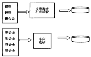块状、板状的金属样品一般采用研磨、抛光的方法进行制备(图1)。研磨钢铁等硬质金属时,采用研磨带(皮带抛光机,60# ~240# )、砂轮机(36#~80# )。在使用研磨带或砂轮的场合,连续研磨多个样品后,研磨粒子的粒度发生变化,使不同样品随研磨效果不同。因此,在研磨一定数目的样品后,要更换研磨带,或对其进行修理。此外,在研磨不同品种的样品时,要注意样品之间的污染。还要注意研磨剂颗粒、研磨带黏结剂(含碳)造成的污染。对于铝合金、铜合金等软质金属,如果使用研磨带,会使杂质进入到样品中或引起表面钝化,所以应使用车床。也可以使用砂纸,但与使用研磨带或砂轮的情况类似,要注意不同样品研磨效果的差异,以及砂纸带来的污染。贵金属、焊料等可以用加压成型的方法制备测量面。金属片、金属屑等样品可以采用重熔后离心铸造的方法,经研磨后,可与块状样品同样的方式进行测定。