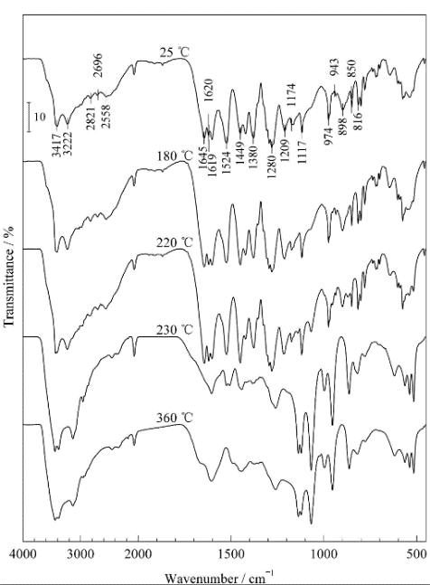 • 图2中230℃固体残留物的红外光谱证实咖啡酸结构完全裂解,特征官能团消失。