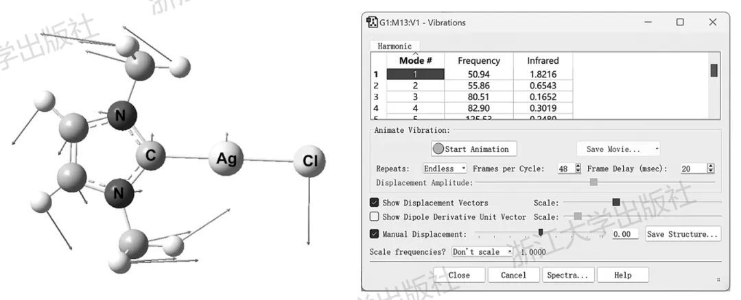 图5.2GaussView查看NHC-Ag配合物振动模式的可视化窗口