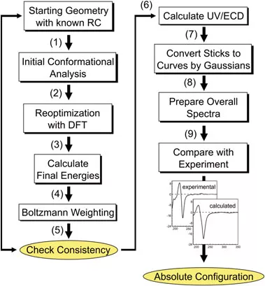 各种,当然也可以说全部。全部的ECD计算谱图预测工作流程都是基于如下的流程图进行的(当然此处指的是靠谱的工作软件或者包装后的黑箱工作流)