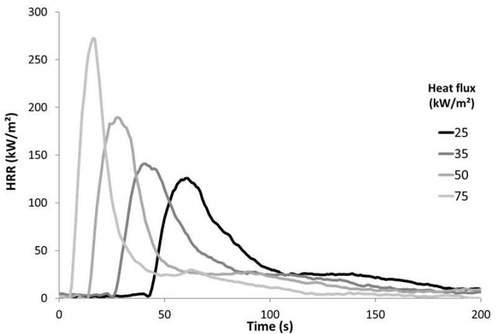 - 纤维素/木质纤维素织物的临界热通量稳定在20kW/m²