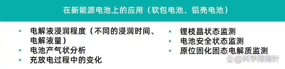 SAM在电池检测领域应用广泛,除了能对电解液浸润程度(不同浸润时间、电解液量下的情况)进行检测,我们还用它开展电池产气状分析、充放电过程变化监测,以及锂枝晶状态监测、电池安全状态监测、原位固化固态电解质监测等工作,在进行对软包电池、铝壳电池等多种新能源电池检测中均能发挥重要作用。