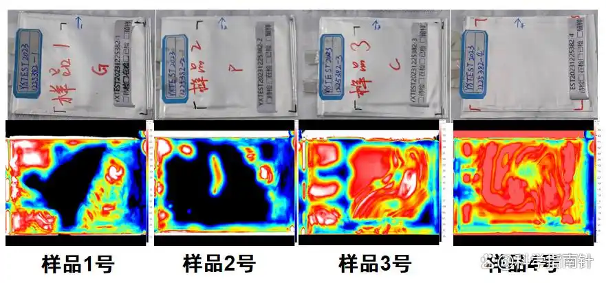 从热力图可见,部分电池样品大面积信号未采集,表明电解液浸润性较差;部分样品信号采集适中但分布不均,浸润性处于中等且不均匀;还有样品信号采集最佳,电解液浸润性良好。