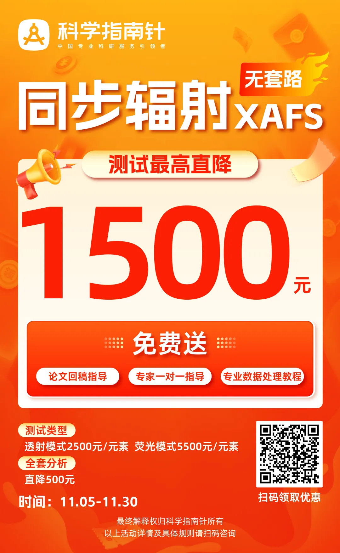 11月5-30日,下单同步辐射每个元素测试最高直降1500元、全套分析直降500元,更有论文回稿指导、专家1对1指导、数据处理教程三大福利免费送!