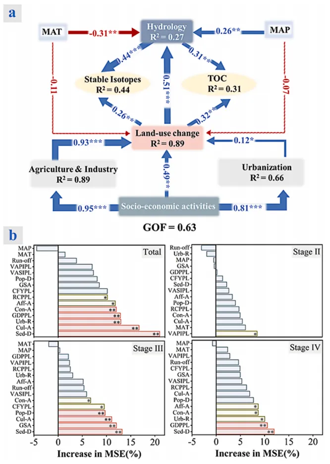农业活动和土地利用变化被证实为关键驱动因素。随机森林模型显示,施肥强度、城镇化指数和水利工程调度是影响有机碳来源的最主要变量。
