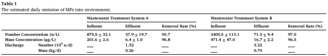 Table 1:估算微塑料(MPs)每日排放到环境中的量