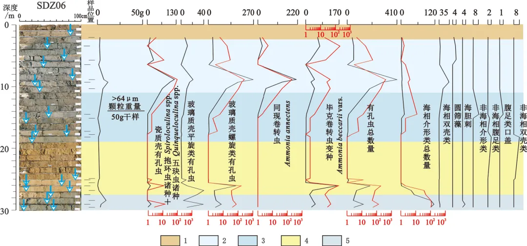 图1:北大港湿地南沈清庄SDZ06钻孔微体化石组合特征和沉积环境分析