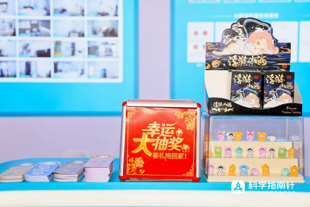 展位现场设置打卡抽奖等趣味互动游戏,并精心准备iPad 、玩偶花束、潮玩盲盒、御守福袋等礼品,以独具特色的科研氛围感赢得众多参会者的喜爱,成为会场中的高人气打卡点。