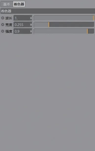 “高斯光谱”其实与“RGB颜色”非常相似, “RGB颜色”使用颜色拾取器HSV来获得色彩信息, “高斯光谱”使用“波长” “宽度” “强度”来获得色彩信息,参数面板如图所示。