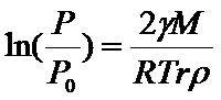 其中:平衡蒸汽压为P,饱和蒸气压为P0,表面张力为γ,T表示绝对温度,R为气体常数,M表示摩尔质量,r表示液滴的半径。
