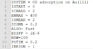 相信到这里大家已经对具体的吸附位点划分有了详细的了解,现在给大家讲一下怎么来用VASP进行吸附结构优化,这里我们以CO吸附在Au(111)面的TOP位为例进行计算。