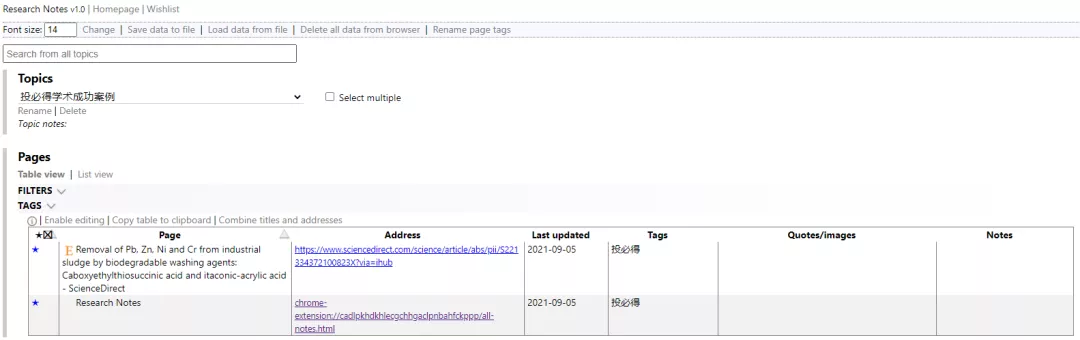 Research Notes收藏的结果,可以保存在不同的topic,也可以设置结果的tag,这有利于分类管理论文。