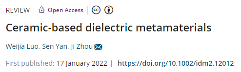 【摘要】 陶瓷基介质超材料因其低介电损耗、结构简单、良好的多场可调和环境适应性,近年来引起了人们的广泛关注。该类超材料被认为有望替代金属基超材料,并为未来无源器件发展提供新的思路。清华大学周济院士、罗伟嘉博士等总结了陶瓷基介质超材料在电磁应用、能源应用、非厄密体系和近零或负折射天然材料等方面的最新进展,介绍了该类超材料的设计原理、响应机制及相关制造技术,并对其未来发展趋势进行展望。