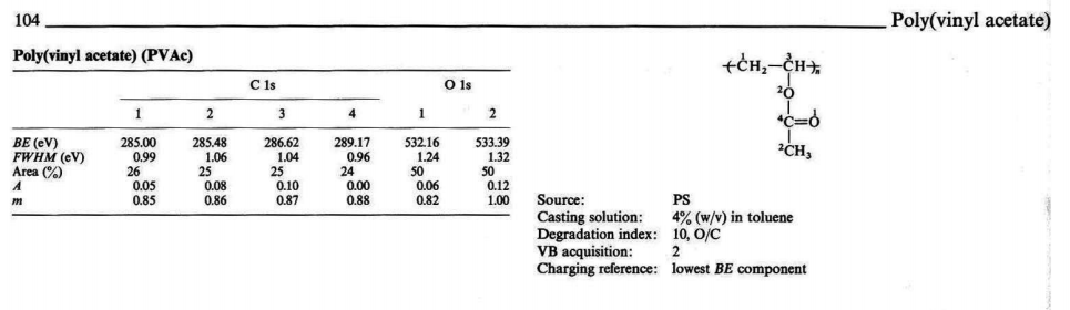 该手册更详尽地展示了有机聚合物的XPS数据,包含物质的XPS全谱、各元素的高分辨谱峰、甚至包括分峰拟合参数表,功能十分强大。