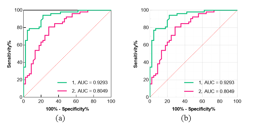 可以通过分别计算各个试验的ROC曲线下的面积(AUC)进行比较,哪一种试验的AUC最大,则哪一种试验的诊断价值最佳。