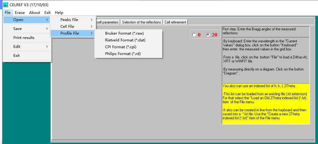 2.打开Celref软件(小编使用的是Celref V3版本),如图所示打开XRD文件;