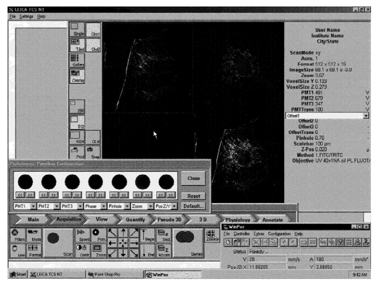 图1 该CSUPERB共聚焦显微镜核心设施有一个徕卡TCS-NT共聚焦系统与直立和倒置荧光显微镜。扫描头可以在两个显微镜之间切换,大约5分钟。