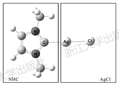 图4.5  一个NHC-Ag配合物的几何结构及片段划分