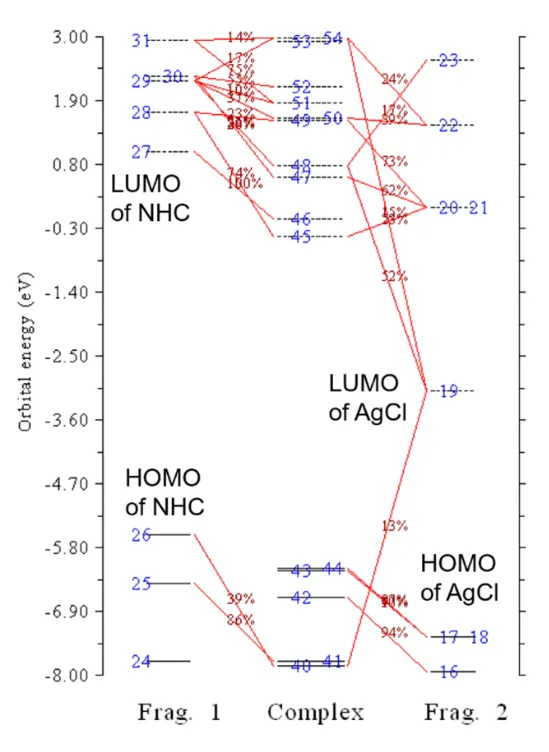 以下用图4.5中NHC-AgCl配合物为例子,来展示ETS-NOCV的基本过程和结果。