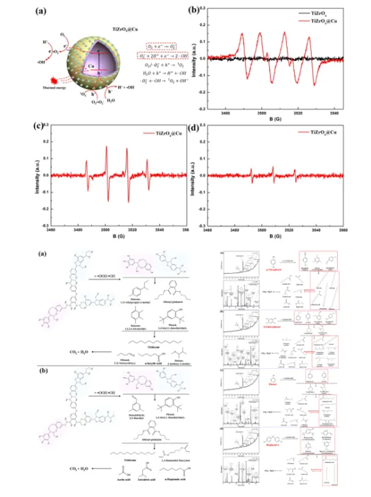 TiZrO₄@Cu中Cu团簇在LSPR作用下诱导电子–空穴分离;
