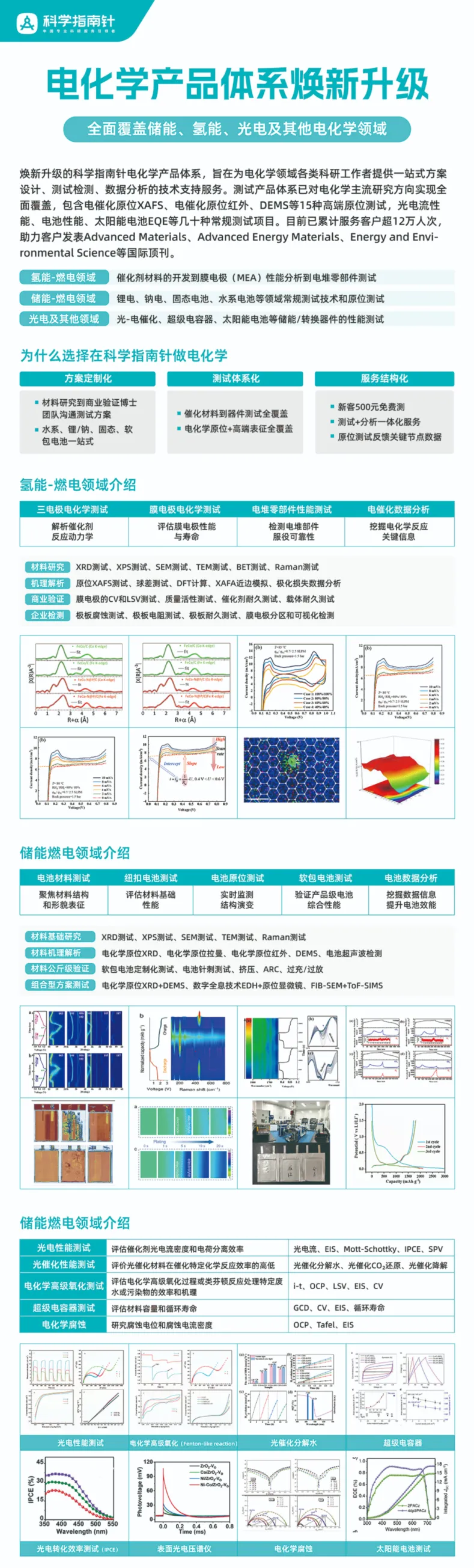 当下,能源转型浪潮翻涌,电化学技术正成为关键赛道。科学指南针深耕电化学领域,焕新升级产品体系,构建覆盖储能、氢能、光电等领域的全方向服务,为你提供一站式方案设计、测试检测、数据分析的技术支持,并推出《氢电转化相关电催化过程解析》等热门课程!