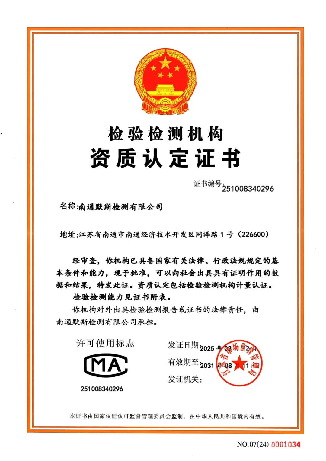 近日,科学指南针指导新锐检测机构——南通默斯检测有限公司成功通过江苏省市场监督管理局的严格评审,荣获CMA(检验检测机构资质认定)证书,印证企业在资质认证咨询领域的专业实力。