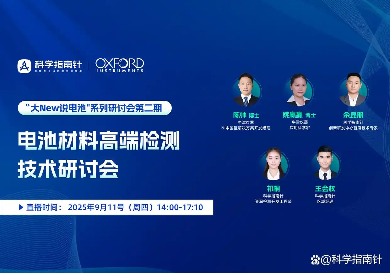 【摘要】 2025年9月11日,科学指南针与牛津仪器联合主办的电池材料高端检测技术研讨会在南京举行。会议聚焦能谱仪(EDS)、EBSD、FIB、拉曼等高端检测技术在锂电池正负极材料、电解质、隔膜等多尺度表征中的应用,分享了“AI智慧检测”体系,旨在推动电池行业向“智慧检测3.0”时代迈进。