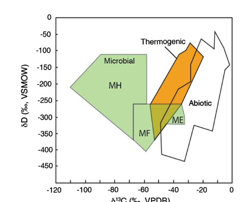 图 1. 甲烷 d13C 和 dD 值比较图[1]