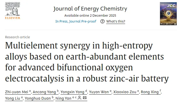 【摘要】 武汉大学晏宁课题组在《Journal of Energy Chemistry》发表研究,开发高熵合金双功能氧电催化剂,显著提升锌空气电池性能。科学指南针提供ICP、VSM表征技术支持,助力材料研究。