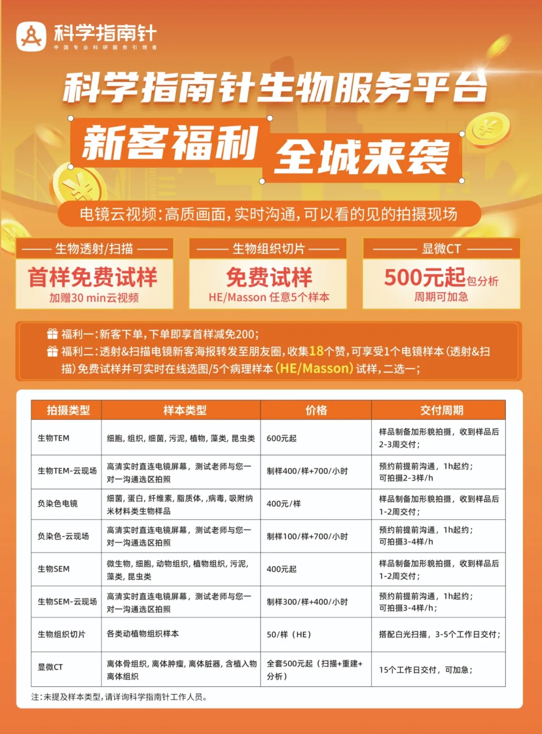 生物电镜新客首单首样免费测