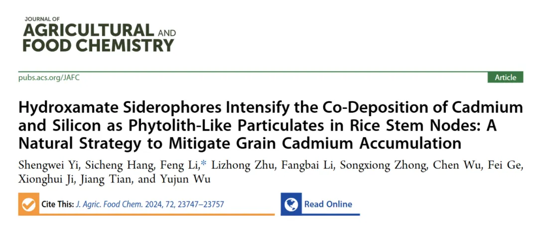 案例2:客户在《Journal of Agricultural and Food Chemistry》(1区TOP,IF=6.2)通过δ¹⁵N标记,阐明铁载体调控水稻镉硅共沉积机制,为重金属污染防控提供新策略。