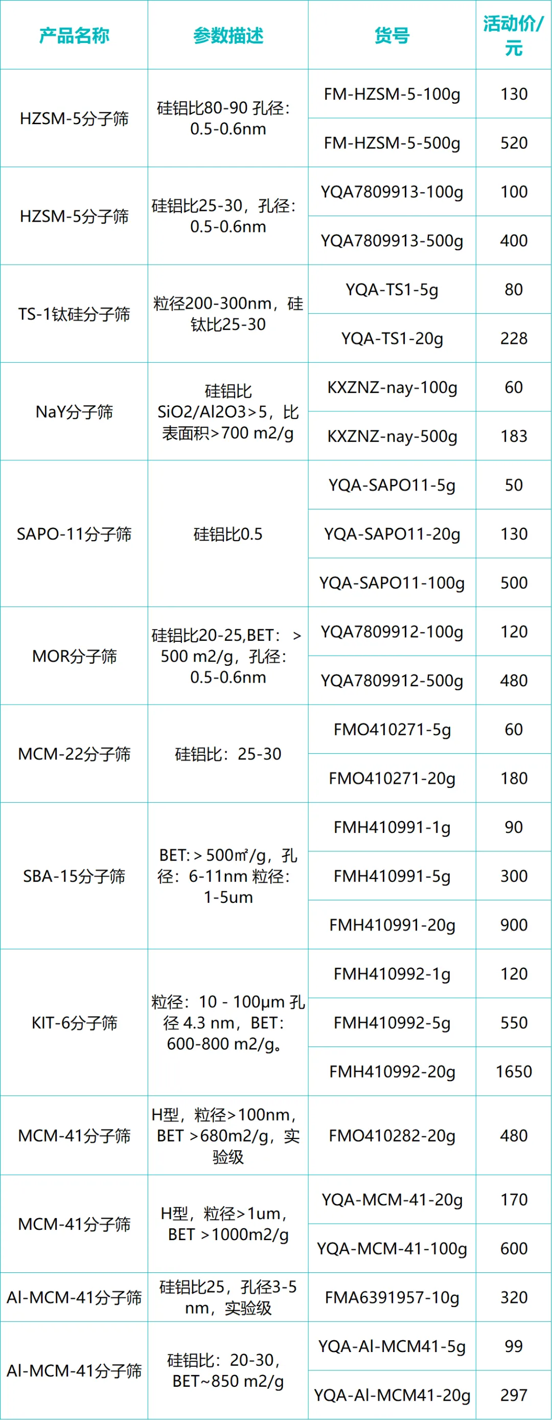 6. 生物医药领域(药物载体、酶固定化)→ 选SBA-15、KIT-6、MCM-41(低成本)、丝光沸石;