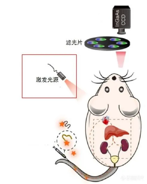 将荧光报告基团/荧光染料标记的药物,注射入小鼠体内;