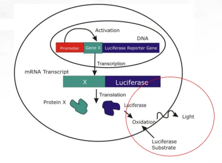 BLI 技术原理:将荧光素酶基因连接于启动子下游,稳定整合到细胞染色体内,使萤光素酶在生物体内得到持续表达,注射底 物后与表达的萤光素酶反应发光。(自发光,其信号的发射不需要外部光源激发)