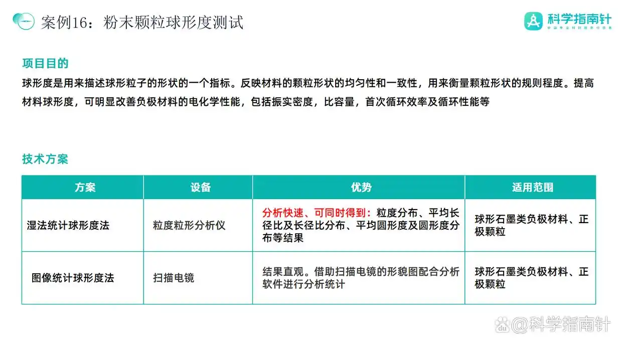 真正的材料评估,绝非单项检测的堆砌,而是多维度、关联性的系统分析。强调从 “成分-结构-形貌-性能” 四个维度交叉验证,建立材料指纹图谱。例如,仅知道粒度分布(D50)不够,还需结合球形度与振实密度,预测浆料工艺窗口;仅知道主元素含量不够,还需检测残余碱、磁性异物,预判其对循环和安全的潜在腐蚀与短路风险。