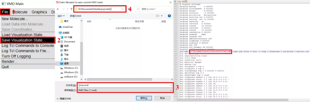 如果今天做完了,担心还需要调整,可保存当前的可视化状态,避免从头来过,1jma.vmd文件中会详细记录下所做的操作过程: