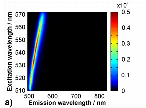 因此,根据所需的光谱范围和激发和发射端测量间隔,荧光物种的综合表征可能需要几分钟到几小时。此外,对分子的光催化反应等快速瞬态现象的全面研究也是不可能的。这需要在几秒钟甚至更快的时间内完成激发-发射映射。为了加快数据采集速度,可以用光谱仪记录全发射光谱,其中所有发射波长同时在相机芯片上检测。这种方法明显更快,但仍然需要对激发波长进行逐步扫描。