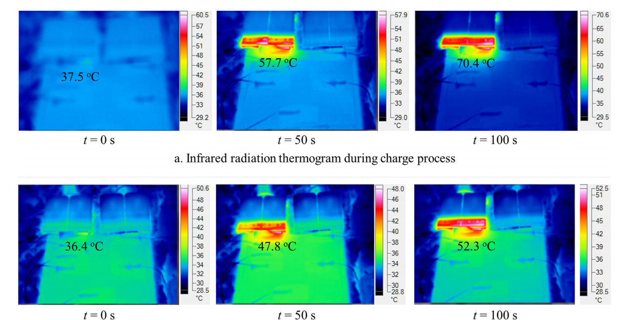 图1. 35 °C 2 C 倍率充放电过程中初始 100 s 的红外辐射热分析图【1】。