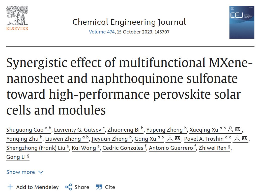 题目:多功能MXene纳米片和萘醌磺酸盐对高性能钙钛矿太阳能电池和模块的协同作用