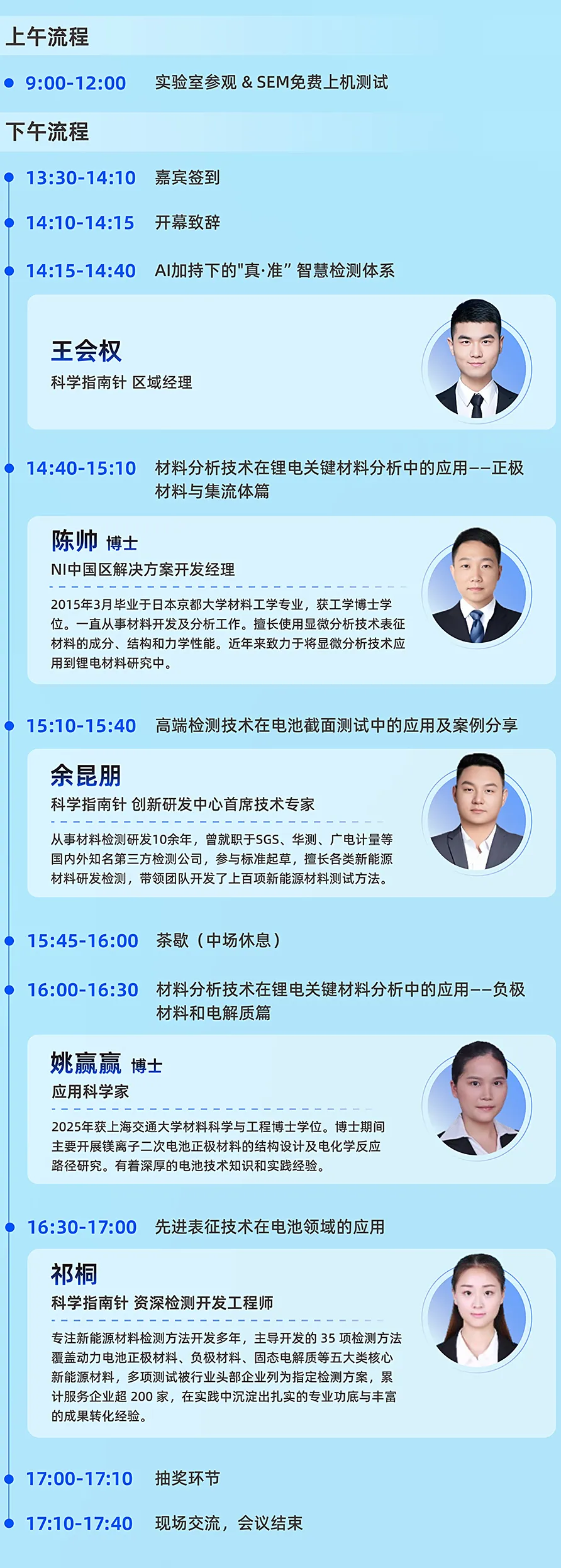 科学指南针携手牛津仪器,邀请四位从业10年以上资深技术专家,教学12种可应用于电池材料的高端检测技术,并有独家实务案例分享。此次研讨会融合“技术实操+行业对话”,上午开放自营实验室参观和仪器体验,下午专家研讨会共探前沿趋势,推动电池技术的创新和行业的可持续发展。