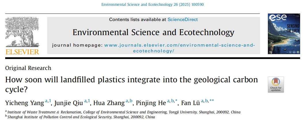 【摘要】 湖南师范大学吕凡团队通过¹⁴C定年、FT-IR、PY-GC/MS等技术,揭示填埋场塑料碎片化规律:PET降解最快,50%塑料碳将在80-208年内进入碳循环,纳米塑料迁移风险需重点关注。研究发表于IF=14.3期刊。