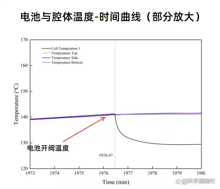 电池开阀是热失控早期响应,温度触发后内部压力释放,标志热管理被动防护启动;后续电压暴跌、极耳脱落,是热失控突破电池结构与电化学约束的表现,对应热失控从“能量累积”到“灾变失效”的临界转变。这些节点通过测试曲线精准捕捉,为电池热安全分级(如热失控预警阈值、防护干预时机 )及防护策略(如被动散热、主动泄压 )设计,提供关键参数,支撑高安全电池体系开发。