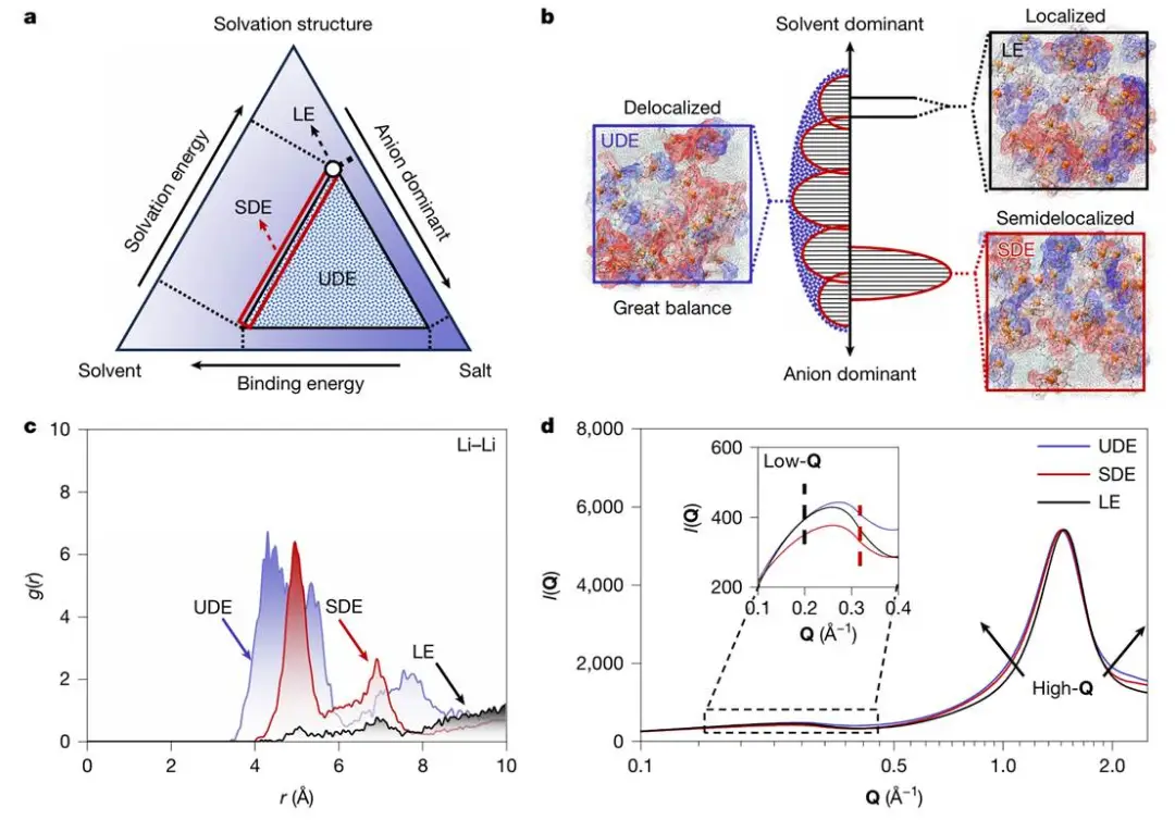 研究团队提出"离域化电解质"新范式,通过破坏传统溶剂化结构局限性,构建高度无序的溶剂化微环境: