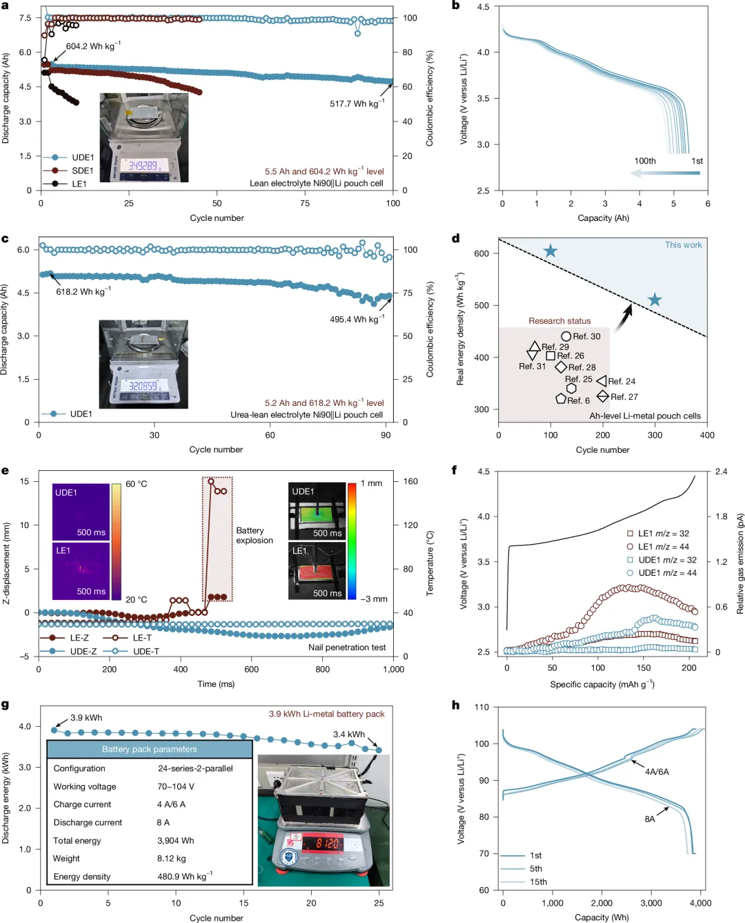 3.9-kWh电池包能量密度达480.9 Wh kg⁻¹,25次循环后容量保持率>87%