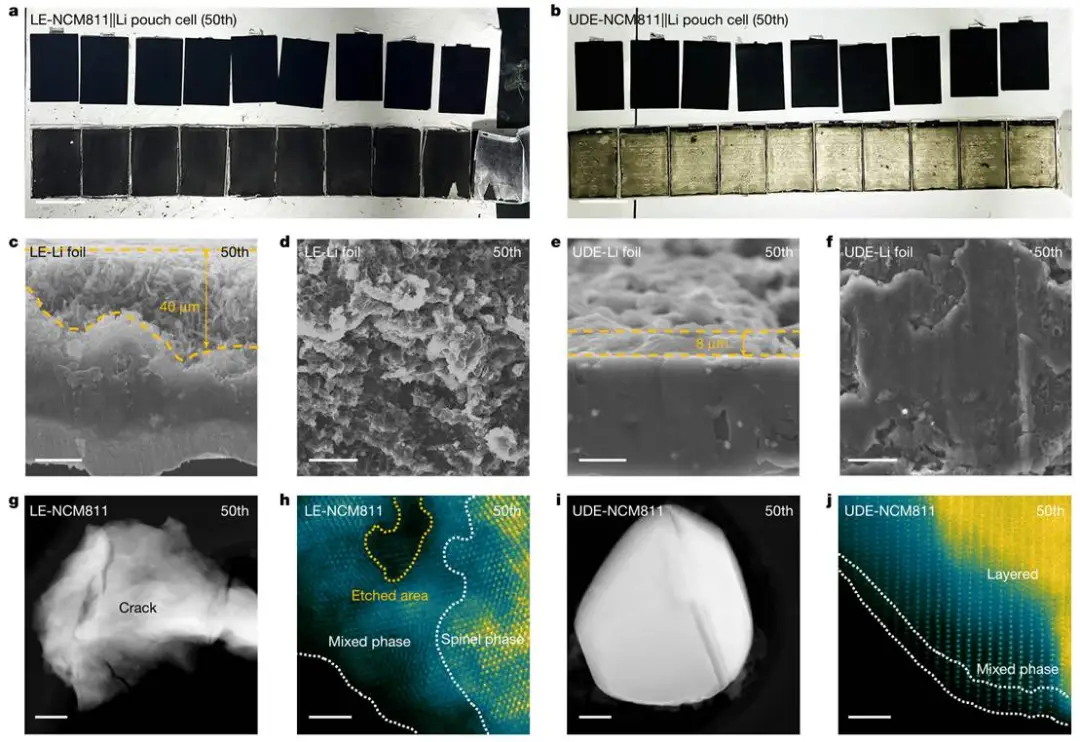 高负载NCM811正极仅形成<2 nm重构层,晶体结构保持完整