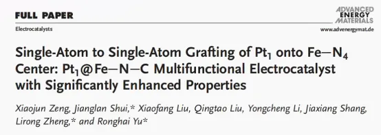 02 Single-Atom to Single-Atom Grafting of Pt₁ onto Fe–N₄ Center: Pt₁@Fe–N–C Multifunctional Electrocatalyst with Significantly Enhanced Properties