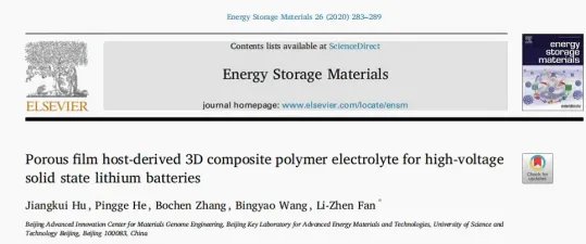 期刊名称:Energy Storage Materials, 2020, 26, 283-289