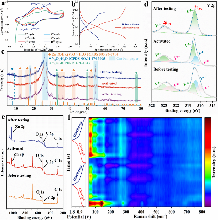 电化学活化过程中V₂O₃转化为V₂O₅·nH₂O,进一步提升比容量